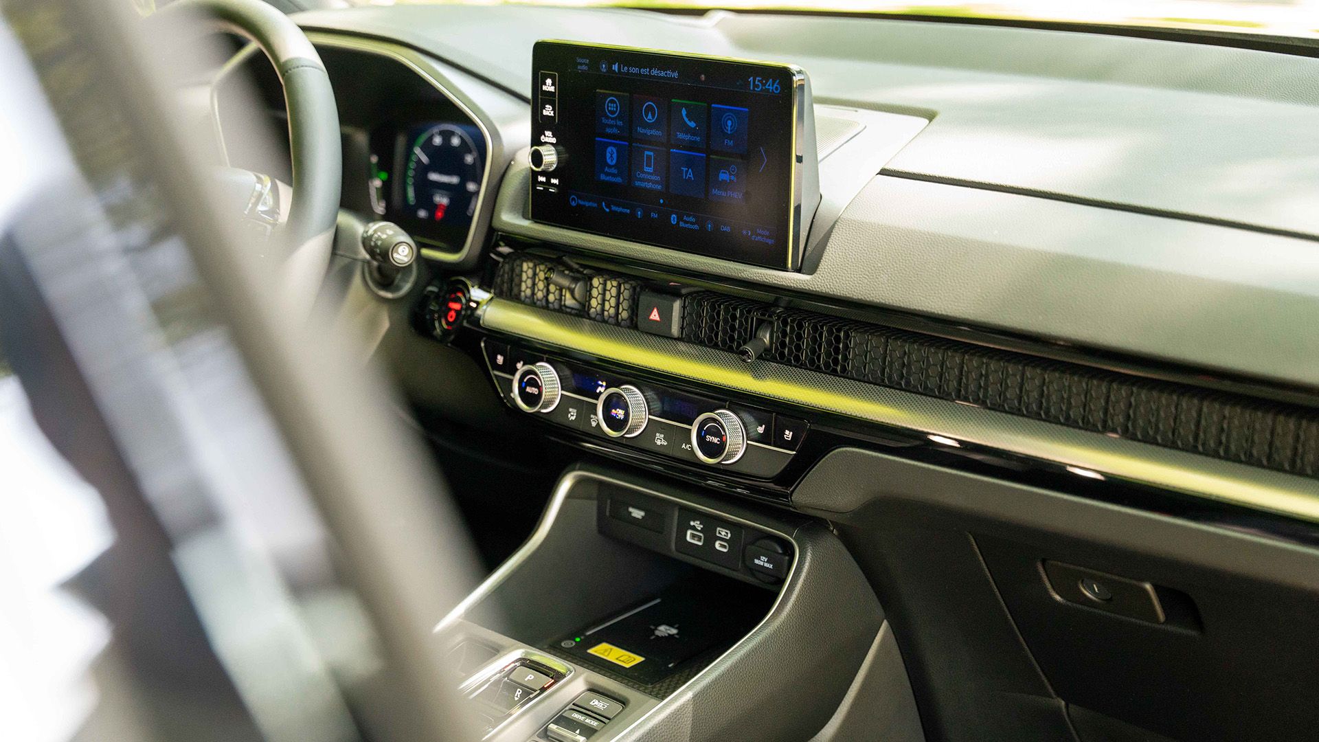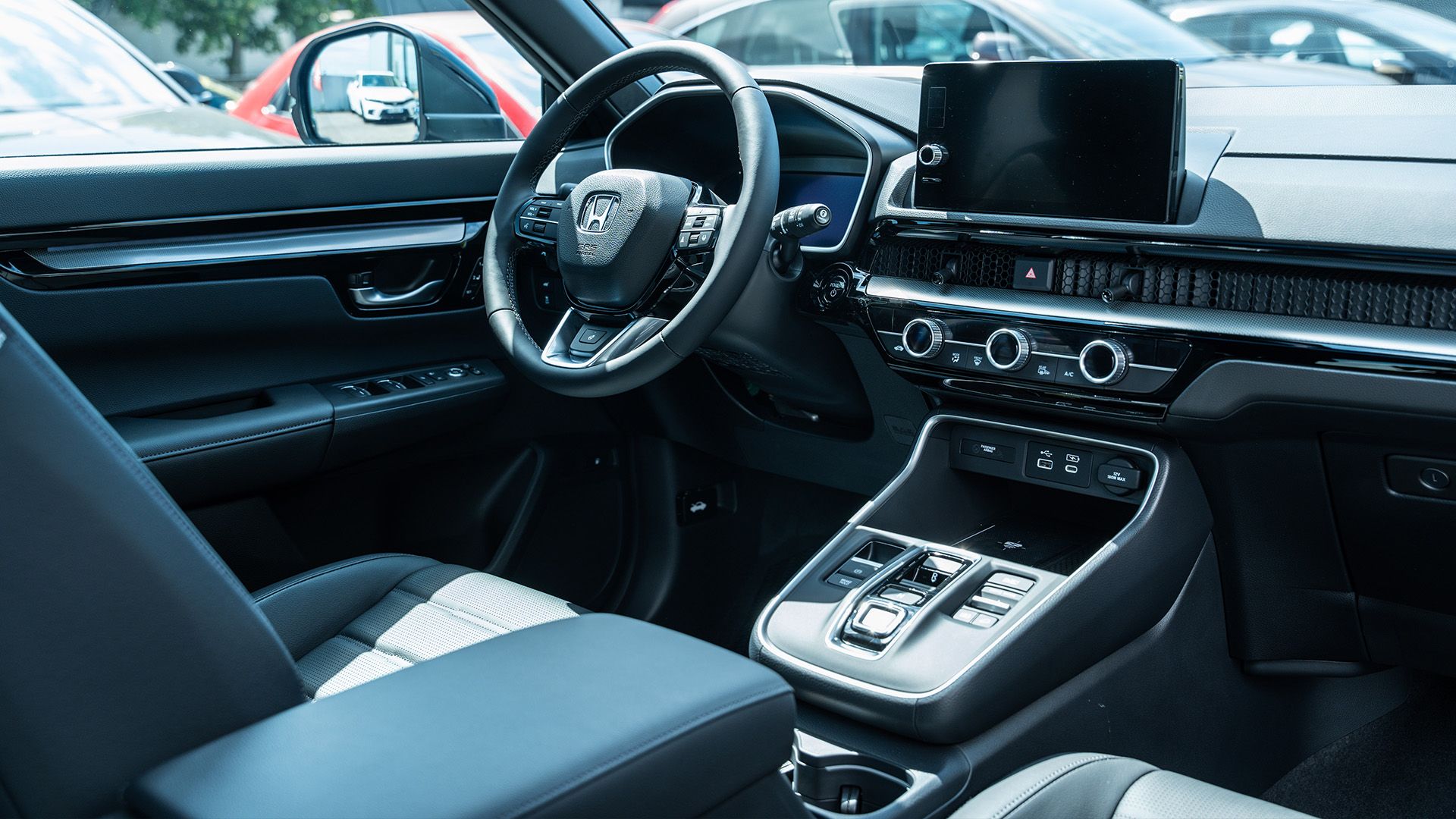 HABITACLE : L’intérieur du CR-V est un savant mélange de raffinement et de modernité. La conception épurée du tableau de bord offre une plus grande visibilité pendant la conduite, tandis que l’écran d’infodivertissement, les boutons et les commandes sont tous facilement accessibles pour le conducteur.
